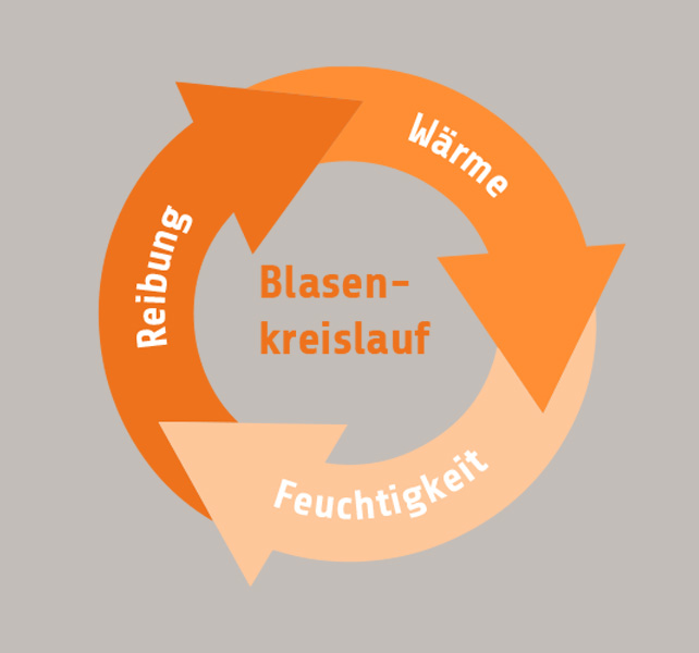 Über das Thema «Blasen an den Füssen» kann jeder aus eigener Erfahrung berichten. Zu verstehen, wie es eigentlich zur Blasenbildung kommt, ist der erste Schritt zu mehr Fussgesundheit. Der Kreislauf der Blasenbildung besteht aus drei Faktoren: